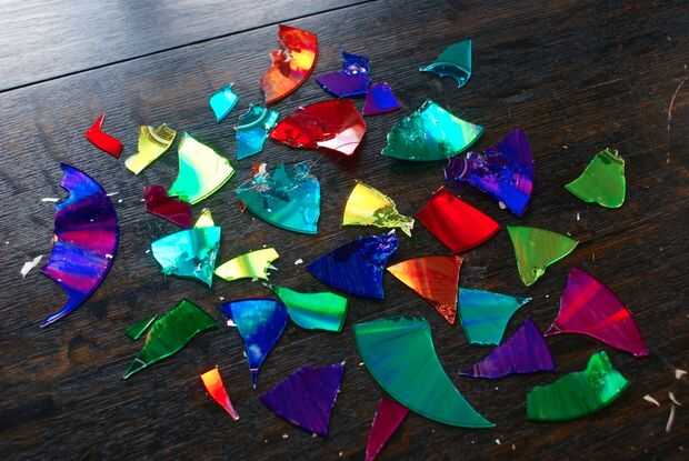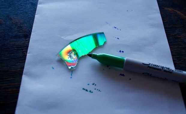 - Continúe este proceso con diversos colores de marcador permanente hasta que todos los fragmentos del CD son de color.