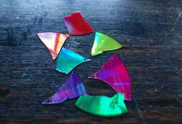 * Nota: Ser amable con los fragmentos del CD y evitar apretar los bordes, ya que son filosas y potencialmente podrían cortar el dedo.