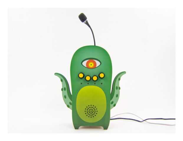 Haber aterrizado en la tierra, este pequeño alien necesita que se enseñe a hablar. Hablan en su antena audio y repetirá sus palabras hacia atrás. Presione un botón y cambiar su tono. En este tutorial, usted aprenderá con más detalle, cómo trabajar con una tarjeta USB de sonido, un micrófono y un altavoz.