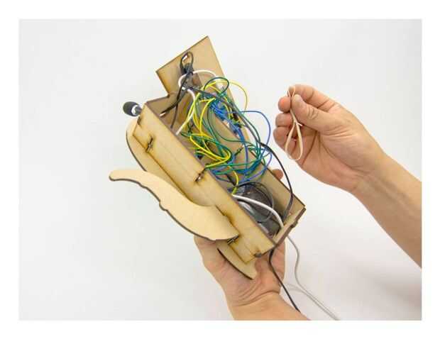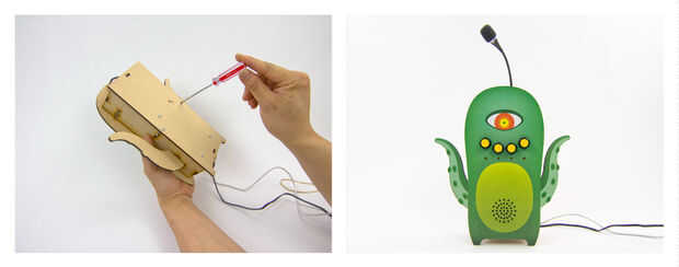 Este cuadro hace ruidos de miedo y tiene ojos rojos brillantes que encienden cuando apagan las luces. Poner debajo de una cama o escritorio a broma sus amigos (o compañeros).También podría cambiar el tipo de sensor para hacer un monstruo activada por