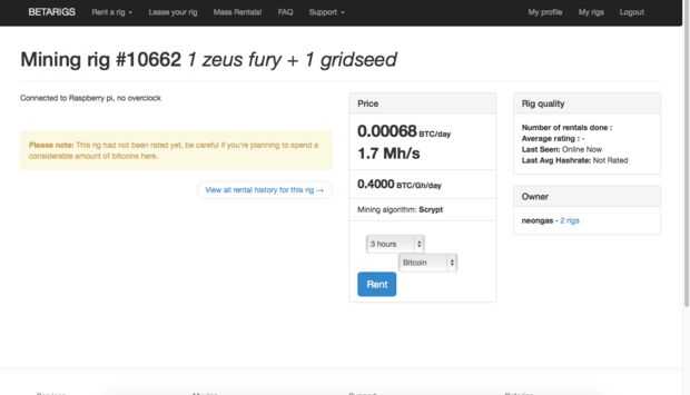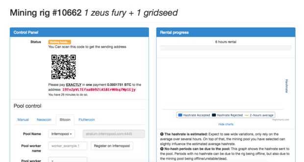 Cuando encuentre el perfecto aparejo, pulsas el botón de alquiler por la barra que describe el precio y cuánto le costará un día. Cuando usted pulse este se le preguntó cuánto tiempo usted lo quiere para extraer y para confirmar su compra. Luego envías la cantidad debido a la dirección Bitcoin y puedes cambiar la configuración de la piscina!