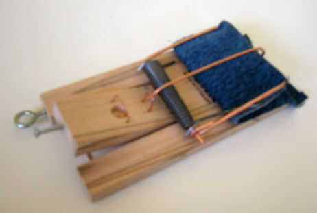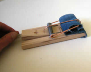 Establecer la trampa como una trampa de rata normal. Mantenga oprimido el gatillo hacia arriba con una mano y doblar una 'taza' en el paño con la otra y puso algunos BB en.