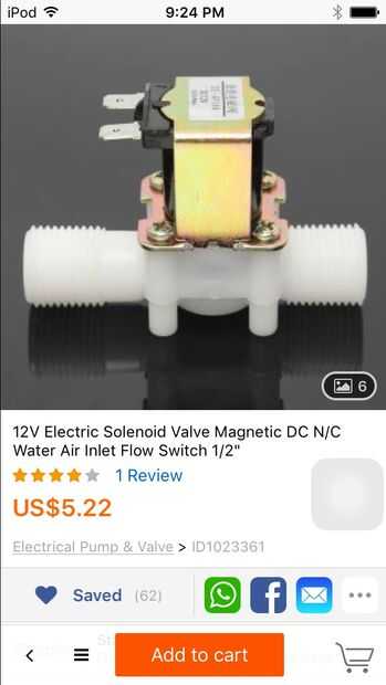 1) 1/2" válvula solenoide 12 voltios (puertos rectos)