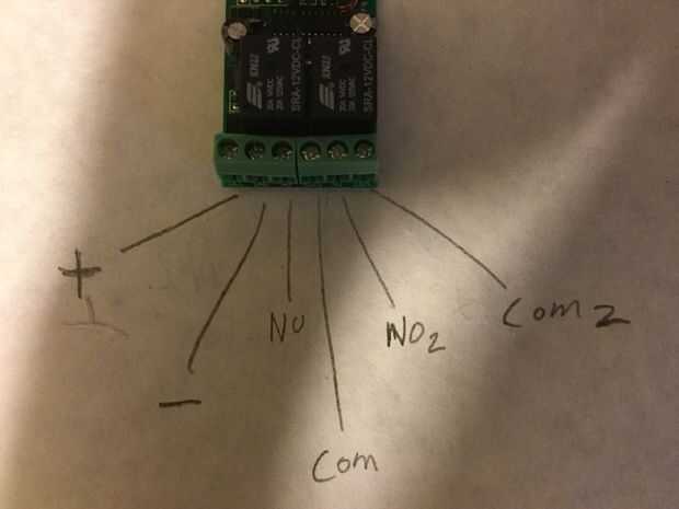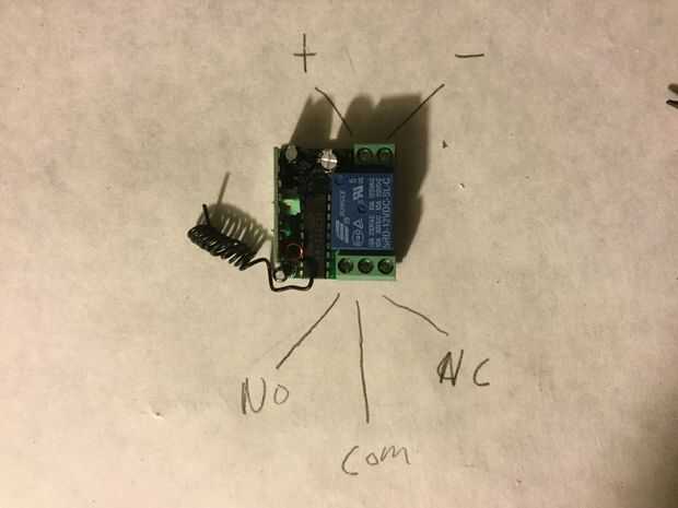 Tengo 2 tipos de interruptores remotos que se muestra. Vamos a utilizar la +,-, NO (normalmente abierto) y el COM (común). El primero es un interruptor de dos canales (estoy usando que uno para este instructable, no por cualquier razón) para NO2 y COM2 no se utilizará. El segunda se muestra el conmutador es s canal único interruptor. NC (normalmente cerrado) no se utiliza. Si esto que conectes, cuando la mina se da vuelta, irá de inmediato y apagar cuando se presiona el botón del control remoto. No quiero a menos que quieras volar tú mismo!