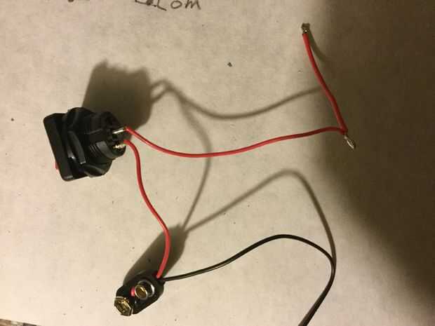 Para comenzar, tome el enchufe de 9 voltios y soldar el cable rojo a un puesto del interruptor SPST y otro cable rojo en el otro post. En el extremo del segundo cable rojo, empalme en otro corto precio de rojo que para un puente de alambre. El extremo con el empalme entra el + puerto, luego el cable de acoplamiento corto entra en el puerto COM.