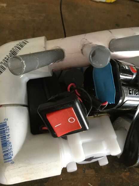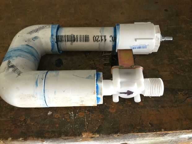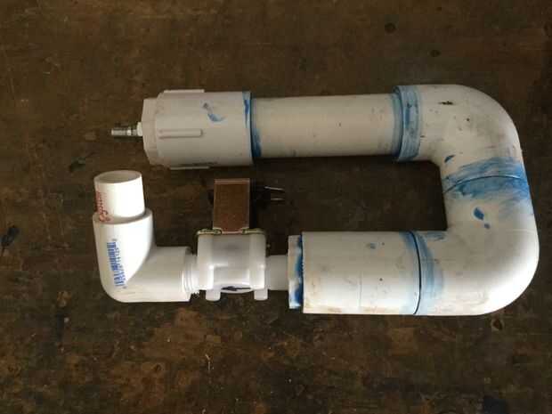 Tornillo en el tanque de aire del lado de los puntos de la flecha de (<--tanque de aire). Ahora sería un buen momento para presurizar el tanque y compruebe si hay fugas en un cubo de agua. Si tienes fugas en los empalmes de pvc, tratar de aplicar pegamento a la articulación, envolver algún tipo de tela hilo alrededor de la articulación y aplicar más pegamento y deje secar. Si la fuga ocurre en cualquier articulación de tornillo, aplicar cinta de teflón más o sellar con un sellador de silicona.