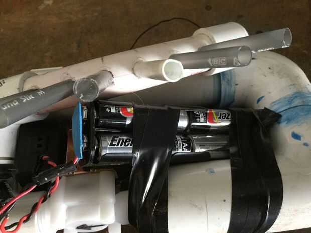 Ponga las baterías en el paquete de energía y cinta en la mina, en un espacio reducido. Enchufe en el poder con el enchufe de 9 voltios.