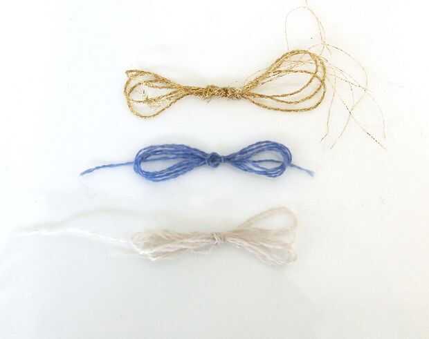 Para este proyecto he podido encontrar el material que necesita a través de la persona que estaba haciendo el trabajo para mí. Se puede ver el hilo que utilizamos (lana en azul y crema) y lurex en oro en la imagen de arriba. Esto nos lleva a la siguiente responsabilidad que tienen los diseñadores, encontrar trabajo.
