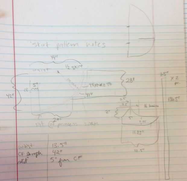 Hice un patrón inicial de unas matemáticas muy simples y ampliar las mediciones a un patrón de tamaño completo. Hice algo que se llama multiplicando cruzado, que me recosté en la escuela secundaria. Más aprendo que no debo nunca lo han hecho más aprendizaje que fue requerido en la escuela secundaria. Myrriah tiene que mantener este patrón original como estaba desarrollando la prenda.