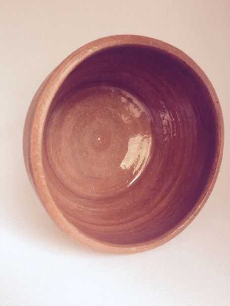 Bueno, el tazón de fuente sobrevivió a la sopa. Voy a tratar esta arcilla bajo fuego por el momento. Tal vez más adelante voy a ver si a fuego alto, pero no esta vez. Porque quiero conservar algunas de aspecto natural de este barro, estoy usando esmalte transparente en el interior, con un borde de tierra marrón en la parte superior e inferior. La banda en el exterior se ha quedado sin esmaltar. Ahora de nuevo en el horno para una cocción de esmalte de baja.