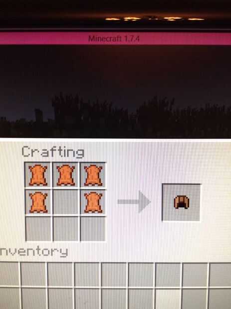 Casco: ponga un material (cuero, hierro...) en el centro a la izquierda, poner un material en el centro, poner un material en la parte superior izquierda, poner un material en el medio superior, poner un material en la parte superior derecha.