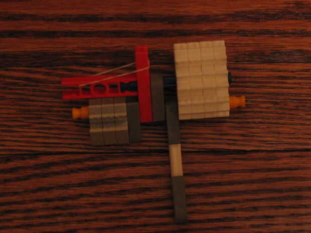 esto es algo que mi amigo y yo diseñado y hecho en cinco minutos. Con una pequeña manipulación, resultó para ser genial. Y como mi primera completo instructivo, me gustaría presentar la K'nex Mini conector hondero. Lo sentimos, no hay video, si quier