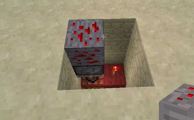 Usted podría utilizar otros bloques, pero tendría que ser extraído para activar la trampa, usando redstone mineral permite la trampa a salir simplemente por tener a alguien a pie a través de él.