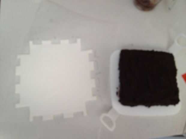 Tu pastel de hielo con cualquier método de adhesión que hayas elegido. Ganache de chocolate he usado porque me gusta mucho el chocolate. Usando un cuchillo de paladar ayudarán a dar un acabado liso y por lo tanto una mejor imagen al final. Si está usando alguna otra técnica, no ponga su cola hasta la parte inferior de los lados del pastel mientras que usted necesita su pastel de chocolate para ser visto a través de.