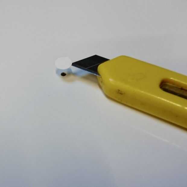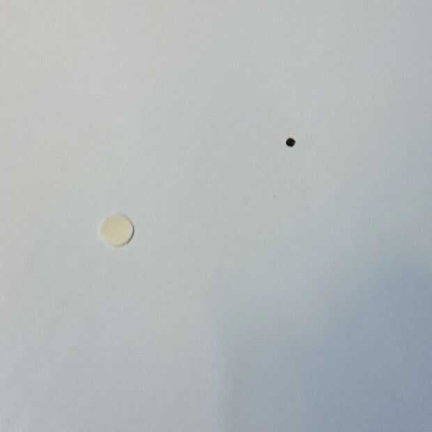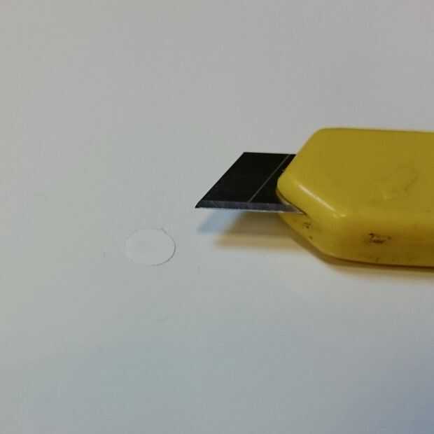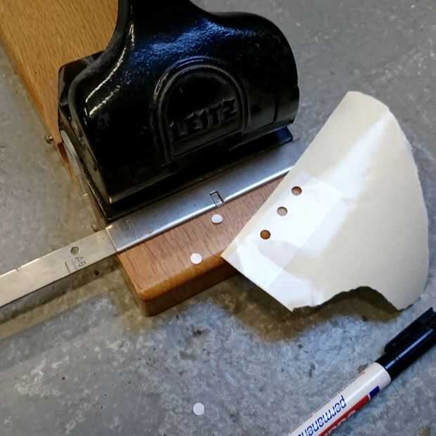 Para cubrir el agujero he perforado un punto de cierta izquierda sobre vinilo y había pegado sobre el agujero.