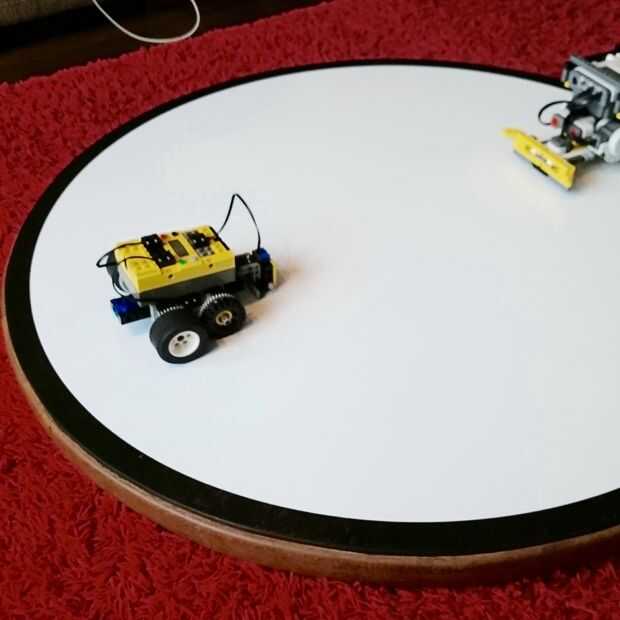 El punto hace el agujero invisible para los robots pero apenas visible lo suficiente para nosotros saber donde el medio es por lo que podemos mantener ambos robots en su propio medio para comenzar una batalla.
