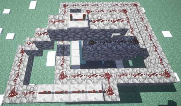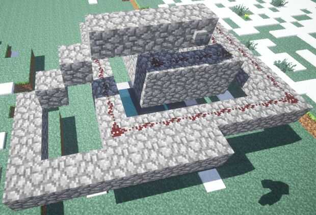A continuación, colóquese redstones ambos anillos (anillo 4 x 4 y el anillo de 8 x 8). Poner un anillo de blockabove la 4 x 4 interior y coloca un botón en el lado del bloque. Luego, realizar una plataforma para el cableado de redstone. Ahora comienzo colocando sus repetidores redstones y redstone como esta imagen se muestra por encima de (repetidores de Redstone pueden depender de la velocidad de su ordenador). Ahora que has terminado este paso, ¡ prepárate para el último paso de este instructables impresionante!