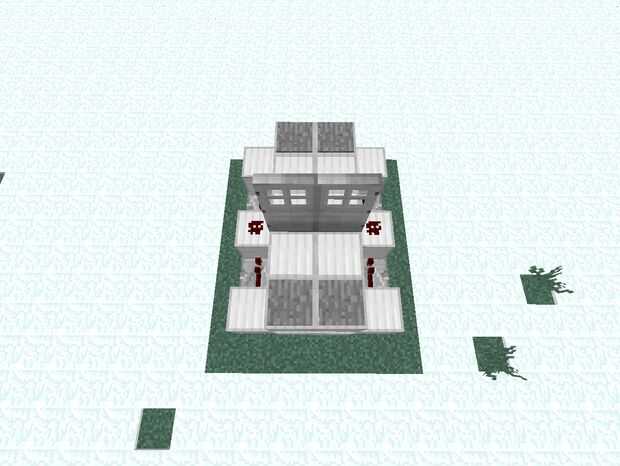 Añadir polvo de redstone 2 en la marca oval en cada lado y uno en cada estructura en forma de w en los lados. Ahora, agregue 2 repetidores de redstone hacia el polvo de redstone que fue colocado en la estructura en forma de w. Tras esto, añadir 2 puertas de hierro y 2 placas de presión en cada extremo de la plataforma más alta en el centro de la plataforma.