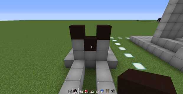 Paso 3 consiste en añadir dos bloques de hierro en el extremo de la base, lo construimos en el paso uno, y entre ellos colocar la parte inferior del cañón. Encima de los bloques de dos hierro que solo colocaste, añadimos la parte superior del cañón