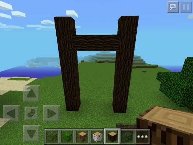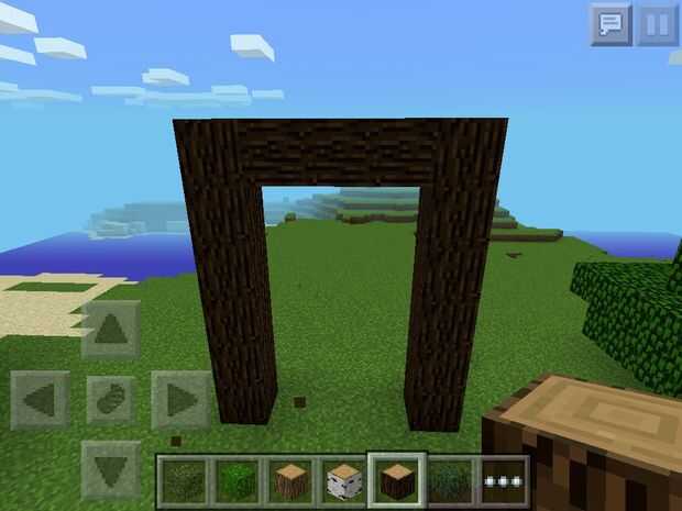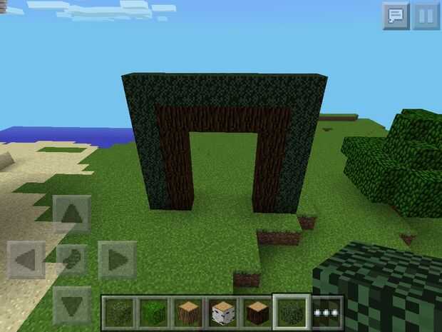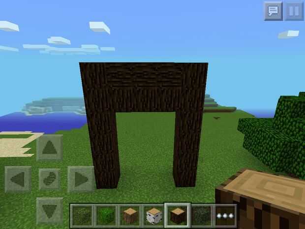 Para construir la entrada, hacer un siete (o cualquier tamaño usted quiere) apilado de la madera que eligió, luego hacer lo mismo cuatro cuadras. A continuación coloque tres bloques a través de conectarlos. Luego coloque un bloque debajo de cada uno de los tres que solo colocaste. Después de se elimine la fila superior de bloques de madera. Por último, coloque el bloque de cobertura elegido alrededor de la entrada.