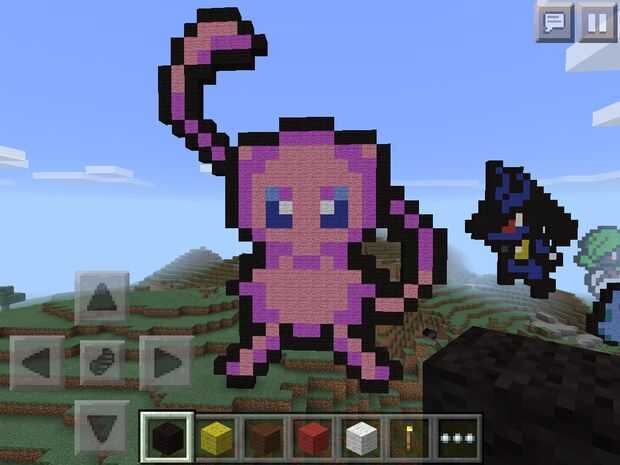Por último, para mini Mew necesitas bloques de lana rosa, magenta, azul, luz azul, blanco y negro.