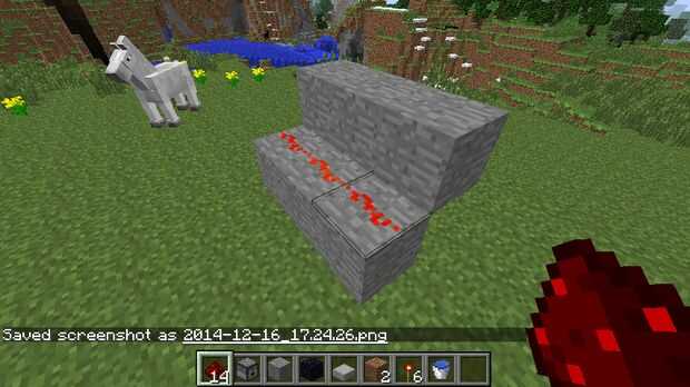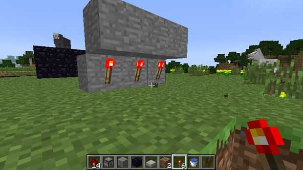 El siguiente es hasta Redstone cableado. Esto tiene que hacerse cuidadosamente o podría emprender el cañón de TNT por accidente. Esto tiene que ir cerca del cañón de la TNT o la señal de redstone le llega el cañón, pero no lo suficientemente cerca para fijar apagado por accidente. Coloque hacia abajo 3 manzanas (yo usé piedra) al lado de uno al otro, luego hacer una T justo al lado de los 3 bloques. romper la pieza de la parte inferior de la T y coloque antorchas de redstone a lo largo de la parte inferior de la piedra. Lugar de redstone en el estante. El redstone empezará parpadeando encendido y apagado a una alta velocidad como so. Construir a un segundo sobre de estas cerca del cañón así.