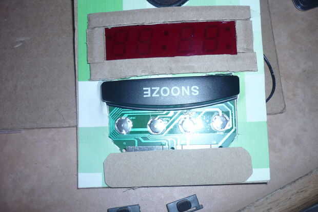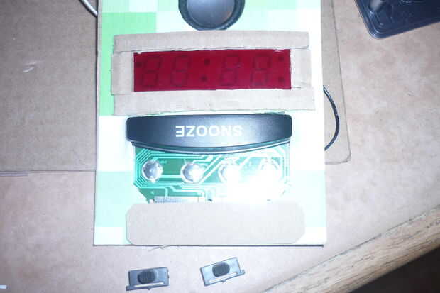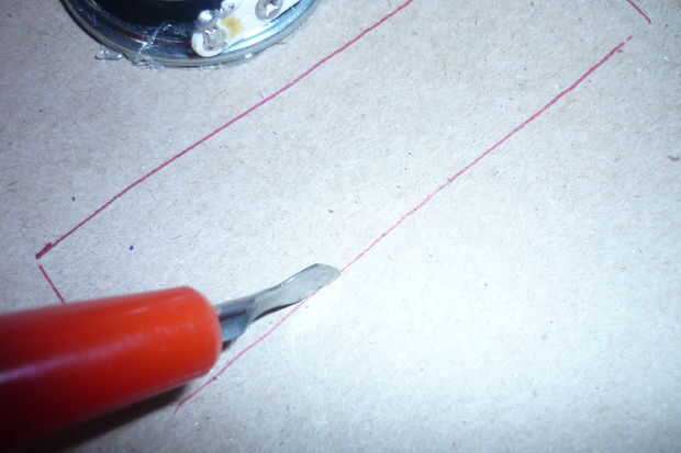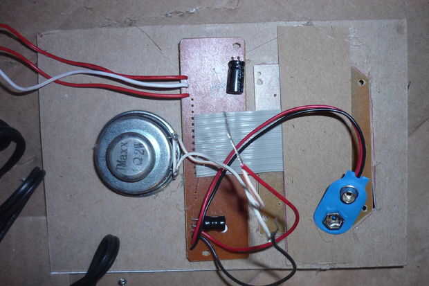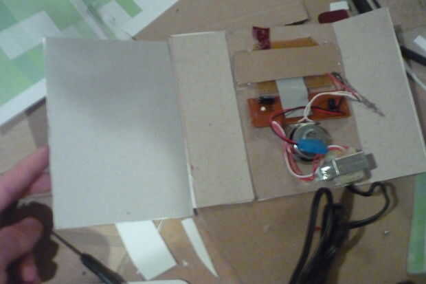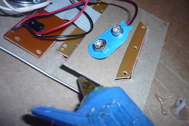 y coloque una tira de cartulina detrás de la placa de circuito para mantener en su lugar