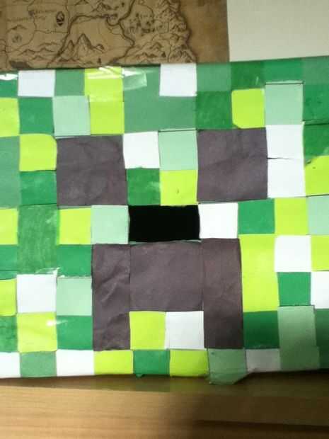 fue un simplificado traje que como un compromiso para el muchacho de Minecraft-obsesionada de mi novia, Halloween 2011. Terminó por tomar la parte mejor de un día para hacer, pero estaba muy contento con los resultados. La máscara está perfectamente