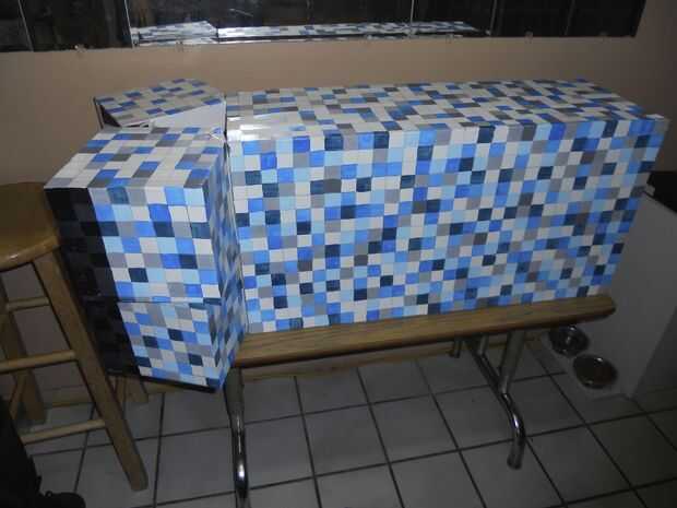 Pintura: Pintar los cuadrados de las enredaderas con unos 3 tonos del color elegido (el color y luego con un poco blanco y negro un poco) y 2 tonos de gris, una luz y una más oscura pero no negra. Sólo alternan sus plazas. No hay ningún patrón establecido.