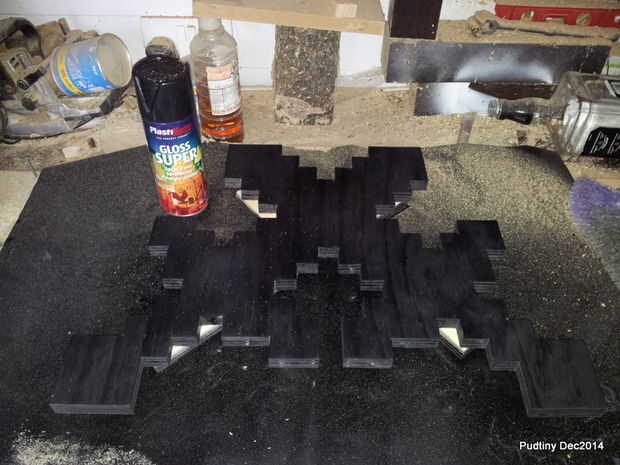 La espalda y los lados son aerosol pintado negro e izquierdo para secarse.