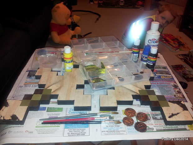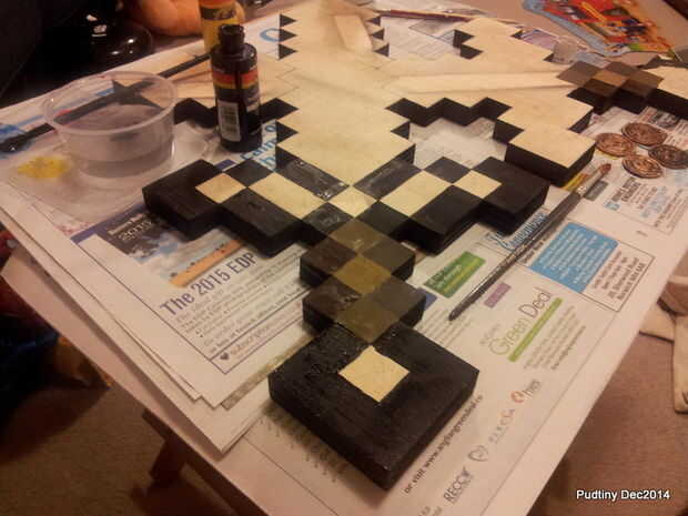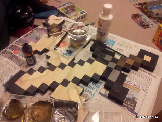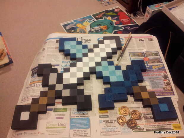 Luego, utilizando la guía de la espada, pinté una espada como el diamante y el otro como hierro.