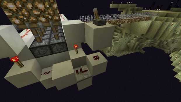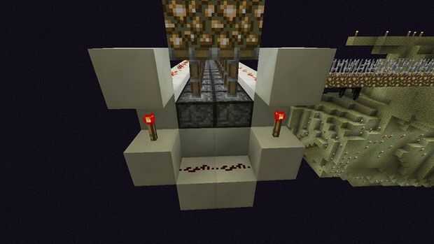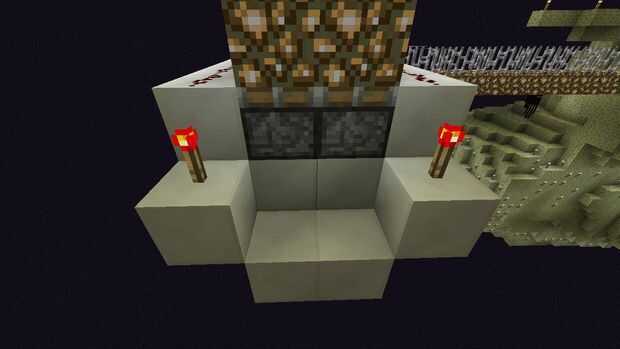 Poner antorchas de redstone en los 2 bloques que están en los lados de la mirada de los pistones en el cuadro 1. Ahora poner redstone en los dos bloques entre los dos cargos. Y coloque un bloque frente a uno de ellos y luego uno al lado de él como se ve en la figura 3. Ahora poner un repetidor en un bloque al lado de una antorcha de redstone como ves en la foto 4 pone un redstone en el bloque detrás del repetidor entonces pone un bloque en redstone y en ese bloque Coloque una palanca.
