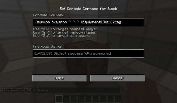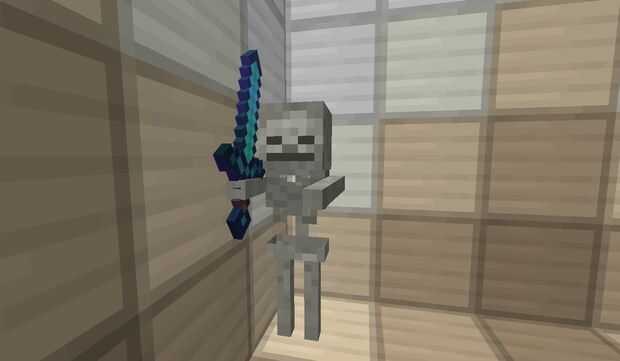 Esto engendrará un esqueleto normal con una espada encantada (definición 2) y Enchanted (protección 1) pantalones/pantalones de cuero.