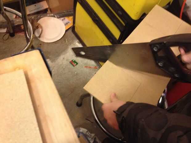 Para que sea fácil, había hecho plantillas de las plazas en ilustrador e impreso entonces en cartulina. Luego recorto con las tijeras y a remontar las plazas a mi madera para cortar las. Estaba haciendo esto con mi hijo de 8 años, usé una sierra de mano con él (turnándose en los cortes). Remonta las plantillas en los bordes de la madera por lo que sólo tendría que hacer 2 cortes para cada plaza. Esto desperdicia mucha madera, pero tenía estas hojas MDF de otro proyecto y solo van a conseguir lanzó de todos modos, pero si he usado madera mejor habría presentado lo diferentemente (utilizados más área de la Junta).