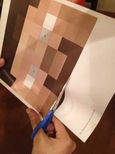 Tomar su boxcutter o tijeras y cortar la caja para que todo hasta la barbilla está oculto dentro de la caja. Esto hará que la máscara cubre su cabeza entera para que se ocultan debajo. Ahora, con las tijeras, cortadas la cara de Steve, atrás de la cabeza, parte superior de la cabeza y ambos lados de la cabeza.