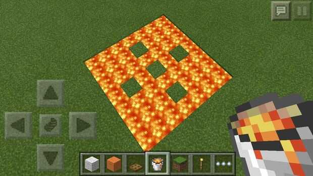 Rellenar con lava que no fluye y poner 4 bloques de suciedad más abajo un espacio delante de la parte del bloque central