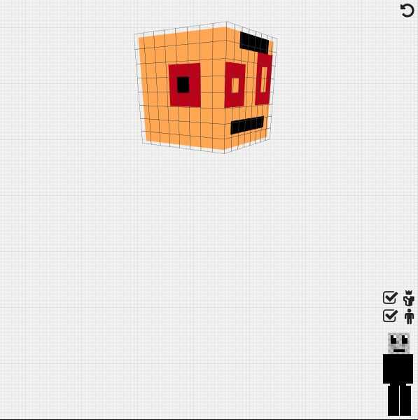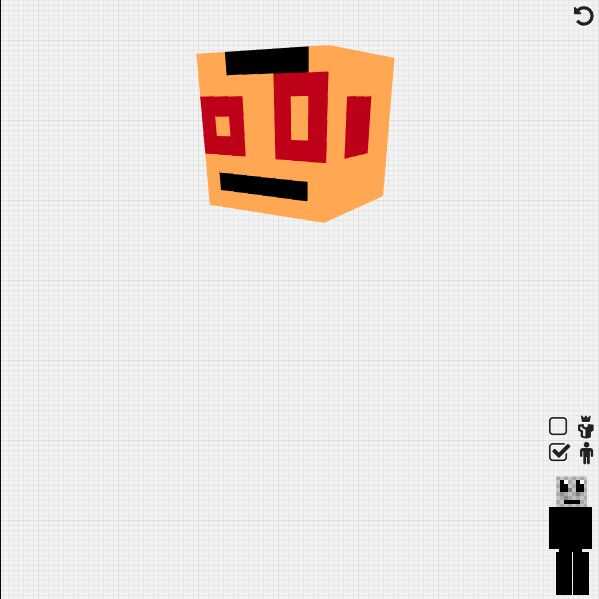 Ahora usando el maniquí en la esquina inferior derecha seleccionar solamente el área que se trabajará, en este caso la cabeza. He añadido los ojos y "orejas" con un color rojo oscuro y todos los detalles con negro.