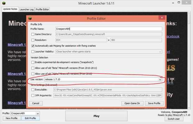 Primero usted necesita para asegurarse de que tienes Minecraft 1.7.10 descargado. Para hacer esto usted debe abrir el Minecraft launcher, ir en la esquina inferior izquierda donde dice "Editar perfil", haga clic en él y establezca su versión 1.7.10. Salir fuera del editor de perfil, pulse play y luego, cuando ha terminado de prensa carga juego de dejar de fumar. Este paso es importante. Si se omite, el mod no se instalará correctamente.