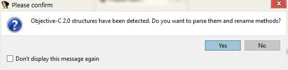 Presione Yes si dice "se han detectado estructuras de Objective-C 2.0". Pulse sí y, a continuación, OK.