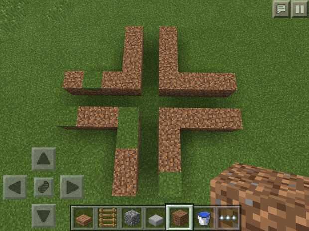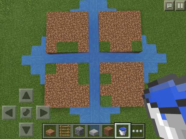En primer lugar, usted necesitará un montón de suciedad y un cubo de agua. Hacer cuatro secciones, todas ellas plazas. Hice cada una cuatro por cuatro porque es hasta qué punto el agua llega cuando usted azada la tierra. Después de haber hecho esto, coloque el agua en el centro de todas las secciones.