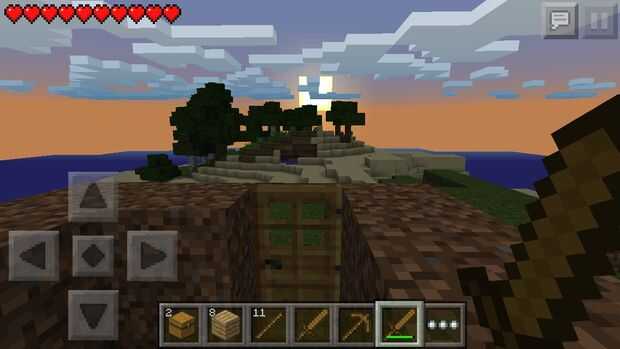 Antes del atardecer del arte algunos palos y hacer algunas herramientas básicas de la madera por ejemplo, un hacha, una espada y un hacha. Incluso pueden crear una puerta. Luego desenterrar alguna suciedad y hacer un pequeño refugio donde puede permanecer protegida su primera noche.