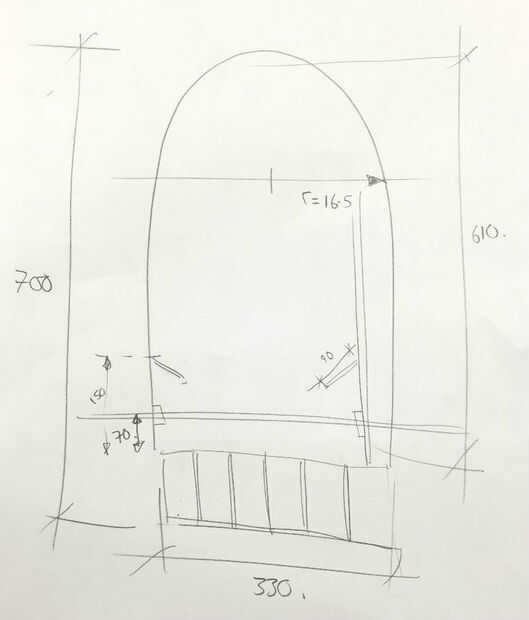 El bosquejo áspero muestra las dimensiones del juego terminado, pero gran parte de la estructura estaba compuesta por como nos fuimos a lo largo.