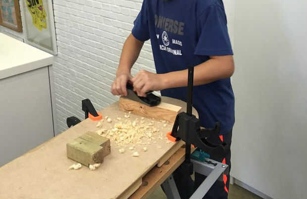 'Steve' lanza el balón hacia atrás hasta el campo de juego durante el juego. Encontramos que él no permanecer vertical por lo que hemos añadido algo de peso en forma de un tornillo grande (M10) para resolver el problema.