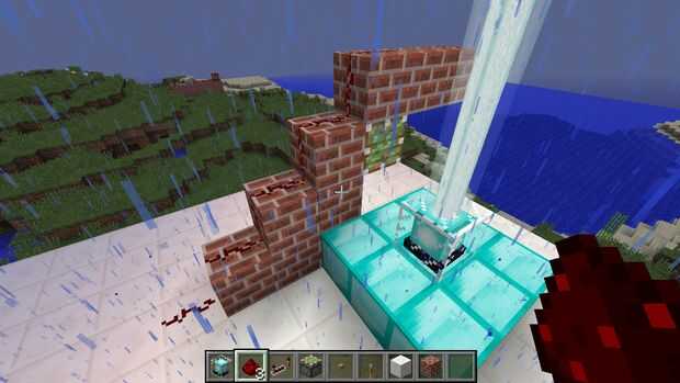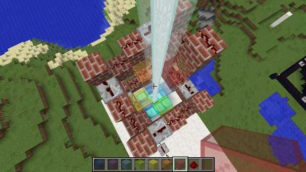 En primer lugar, empezar por hacer un faro. Luego comenzar a añadir los pistones pegajosos, bloques, repetidores y redstones igual en la foto. Un pistón se asemeja a un color. Los repetidores están situados en el retardo de una señal.
