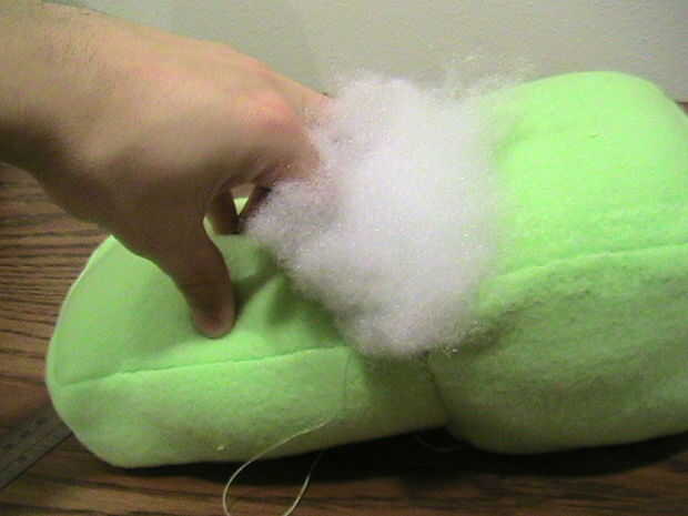Rellenar el cuerpo con relleno de fibra a través de la apertura y cerró la puntada.
