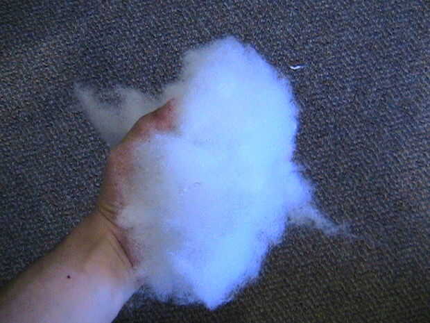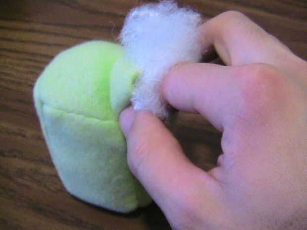 Toma un puñado de relleno y el la parte de la pierna hasta que quede bonito y felpa. Preste atención a las esquinas de la materia así que soplo hacia fuera en la forma deseada del bloque.