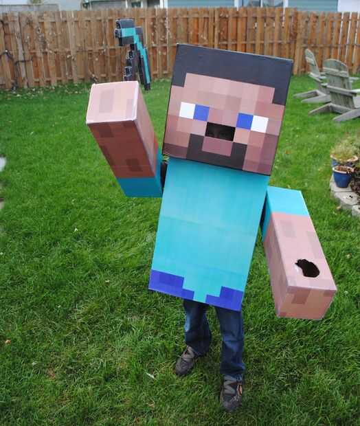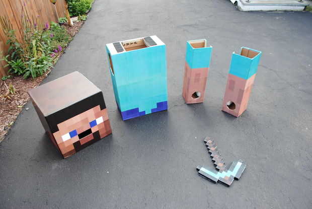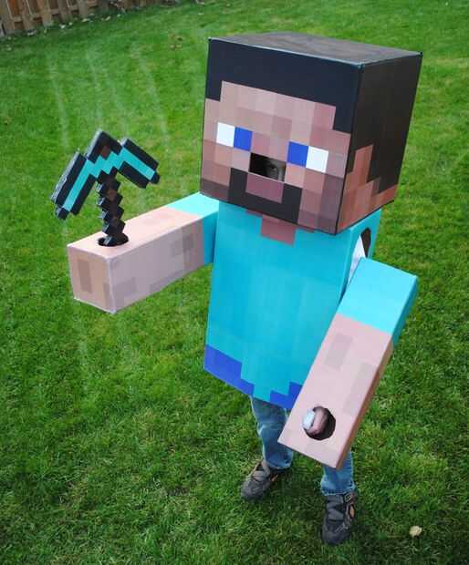 Nuestros hijos, como millones de personas alrededor del mundo, están obsesionados con todo Minecraft. Aunque no estoy mucho en mi juego, yo puedo apreciar las virtudes de este juego - es decir, la simplicidad y la creatividad abierta que ofrece. En particular, la simplicidad es lo que hace esto una opción lógica para los trajes de este año. La mirada pixelizada, bloque de todos los personajes los hacen perfecto para construcción de cartón - que pasa a ser gratuita y abundante.