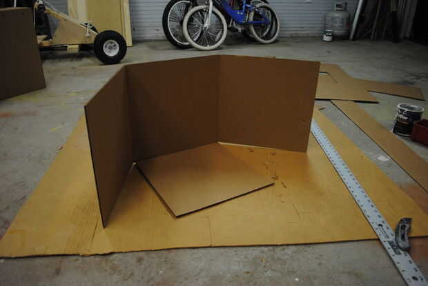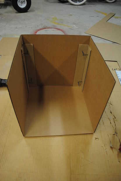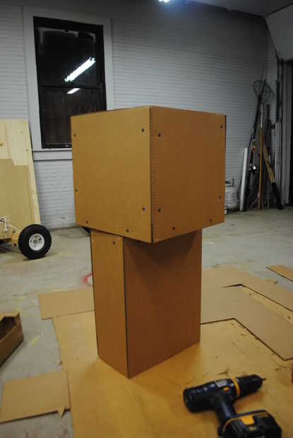 Por último, la superficie inferior debe añadirse. Tiene un orificio cuadrado para una cabeza empujar a través. Esto se une con ángulos de cartón.