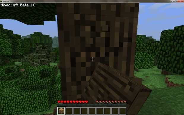 Mueva el cursor sobre la madera hasta que aparezca el borde negro alrededor de él y mantenga pulsado el botón izquierdo del ratón hasta que se rompe. Moverse sobre el bloque pequeño que aparece para recogerlo.