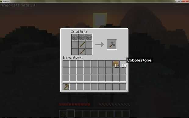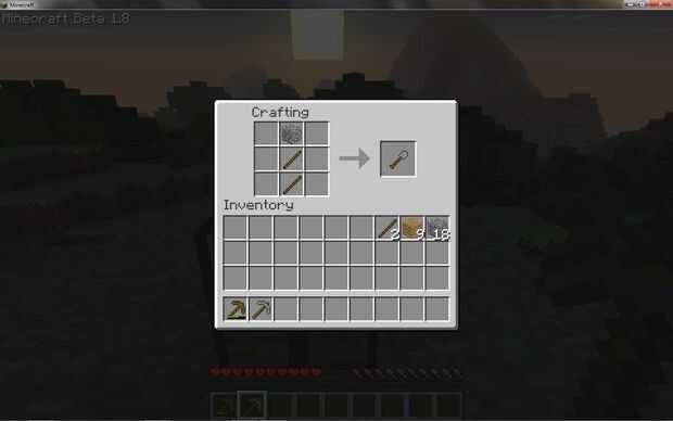 Para hacer una espada de poner un palo en la plaza central de fondo y luego poner un tablón en las dos casillas por encima de él.